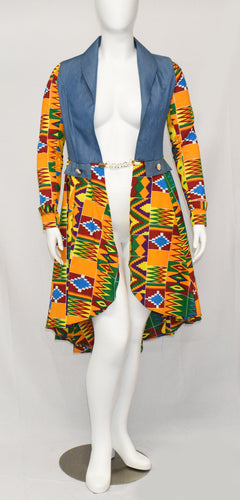 Trendy African Denim Dutch Wax Printed Hollandaise Kente Fabric Suite All Sizes